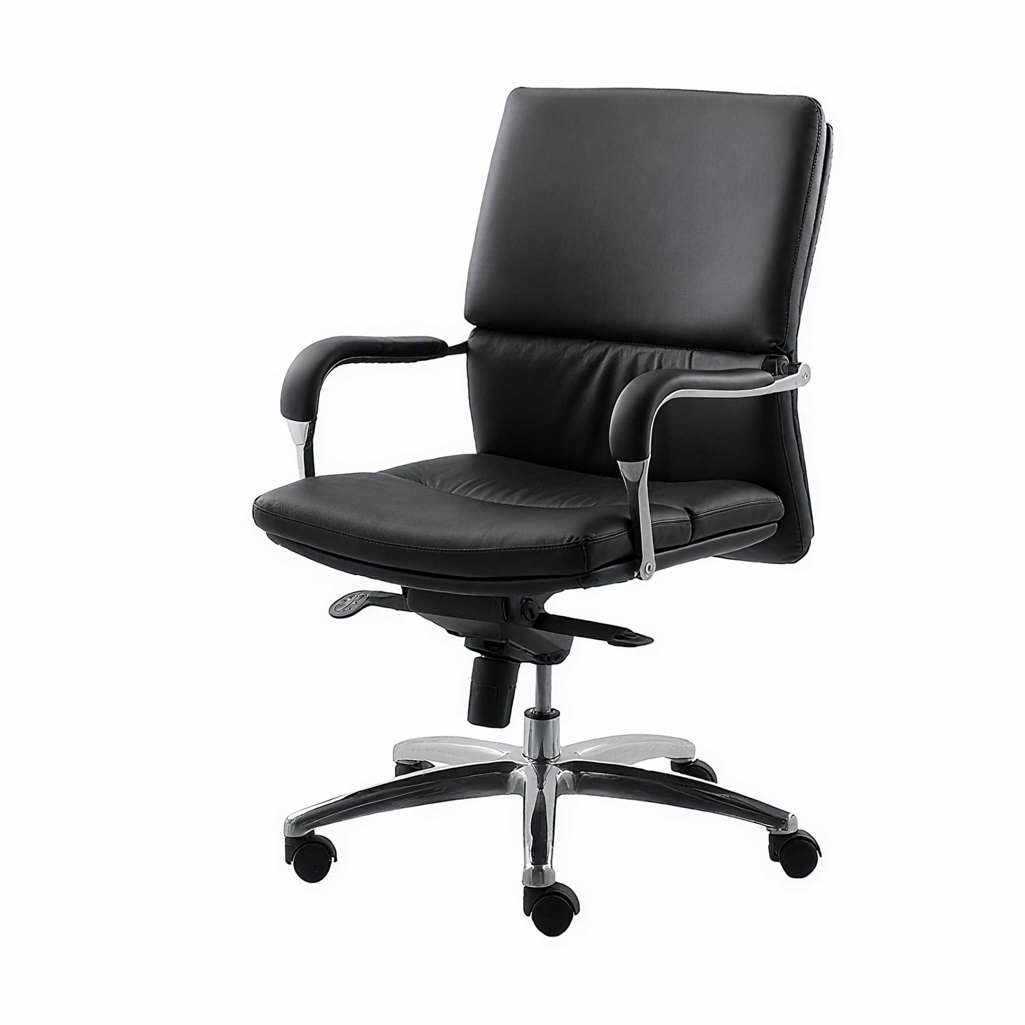 Sedište i naslon su obloženi sunđerom, a fotelja se tapacira po izboru klijenta – u pravoj koži, eko-koži ili visokokvalitetnom štofu u boji po želji. Metalna baza i točkići garantuju stabilnost i dugotrajnost, dok elegantne linije i moderan dizajn čine ovaj model savršenim izborom za reprezentativne poslovne prostore.